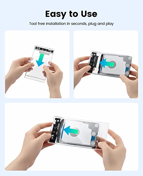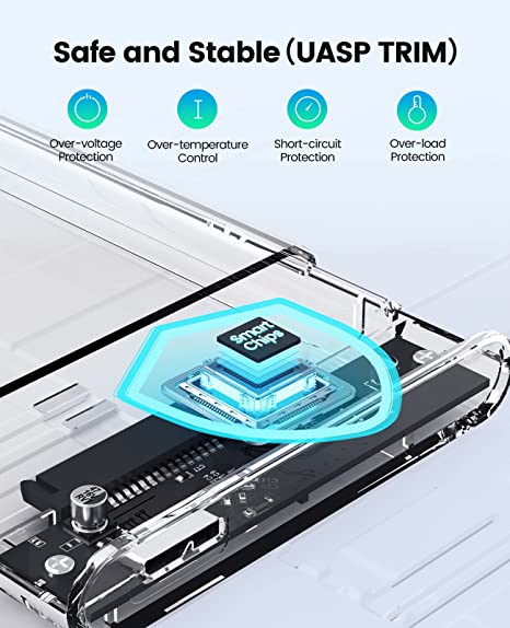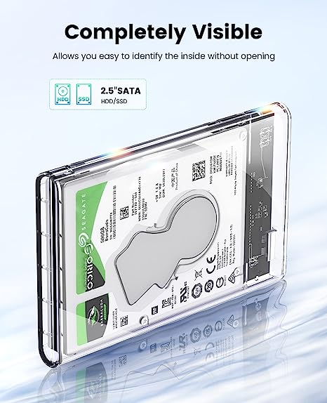 - Easy to See Which Drive Inside – ORICO 2.5 hard drive enclosure made of high-quality transparent crystal PC material. The clear ssd case design allows you to see the inside drive without opening it.