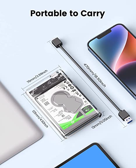 - Portable Hard Drive Enclosure – ORICO external hard drive case can easily hook up your old 2.5inch SATA I/II/III hard drive to transfer files from one PC to another PC, laptop, PS4 or as a USB external hard drive. A 50cm USB-A cable is included for flexible connection and portability.